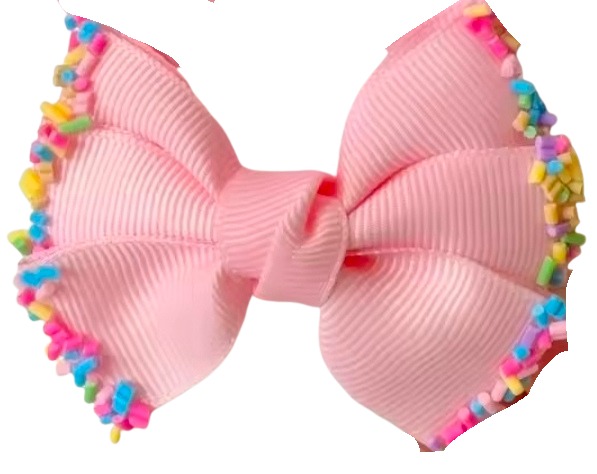 Adorable grosgrain bow dipped in sprinkles! Available in light pink, bright pink, and white!